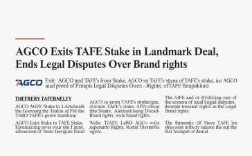 TAFE and AGCO Reach Landmark Settlement on Brand Rights, Shareholding, and Commercial Agreements Deal solidifies TAFE’s ownership of Massey Ferguson...